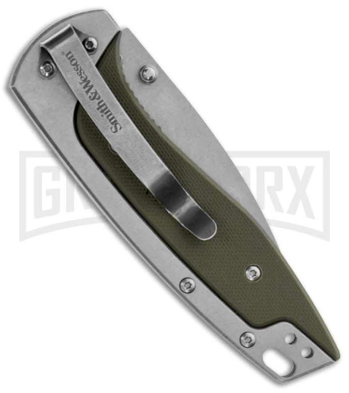 This model of the Freighter has a stonewash drop point blade and a stainless steel handle with a green G-10 inlay.